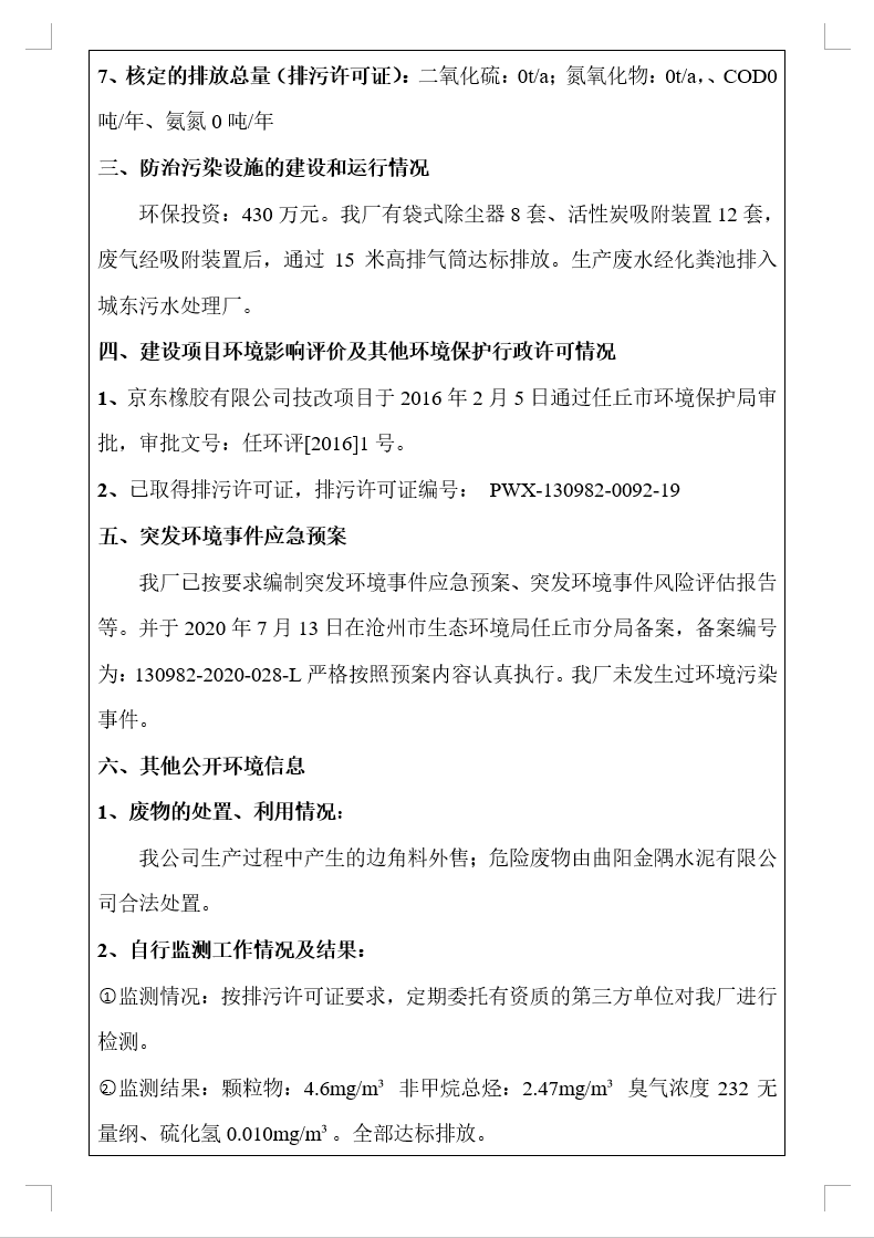 任丘市經(jīng)濟開發(fā)區(qū)京東橡膠有限公司一分公司信息公開內(nèi)容